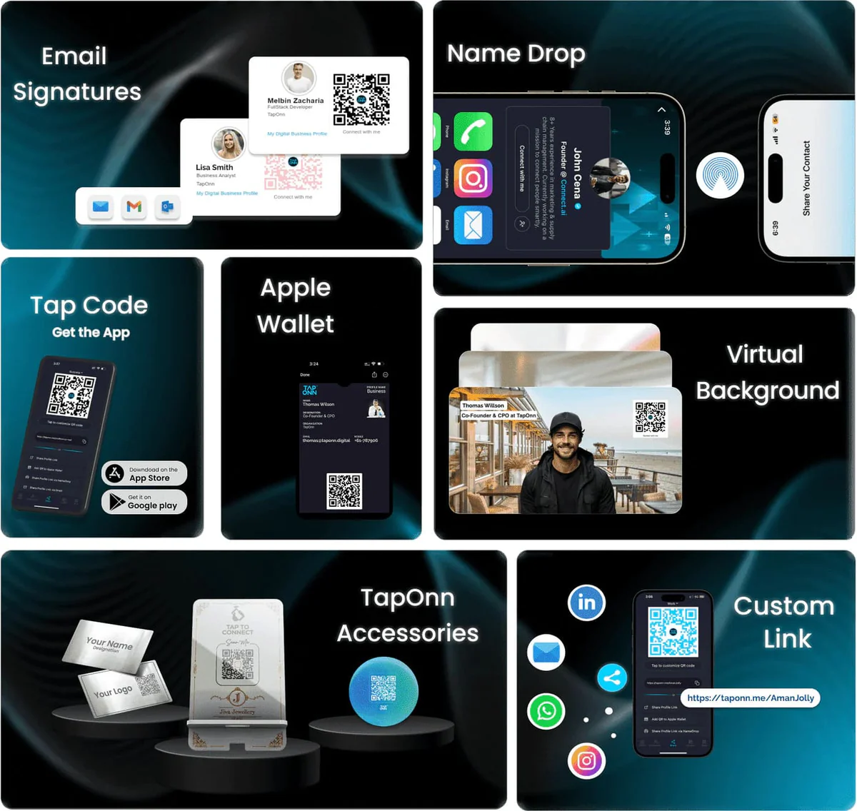 Introducing TapOnn’s smart products—your key to sharing who you are and what you do in the most customized, impressive, and fastest way possible. Backed by NFC and QR code technology and perfected by our expert team, TapOnn’s smart products redefine the art of self-presentation.